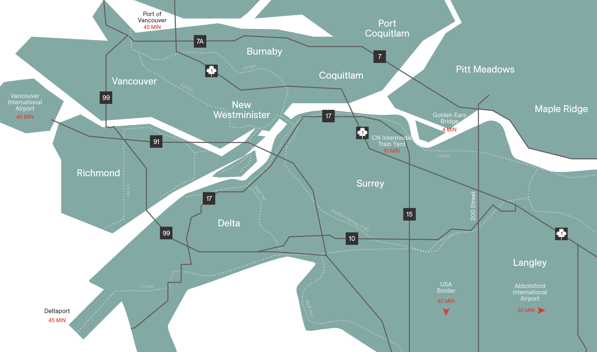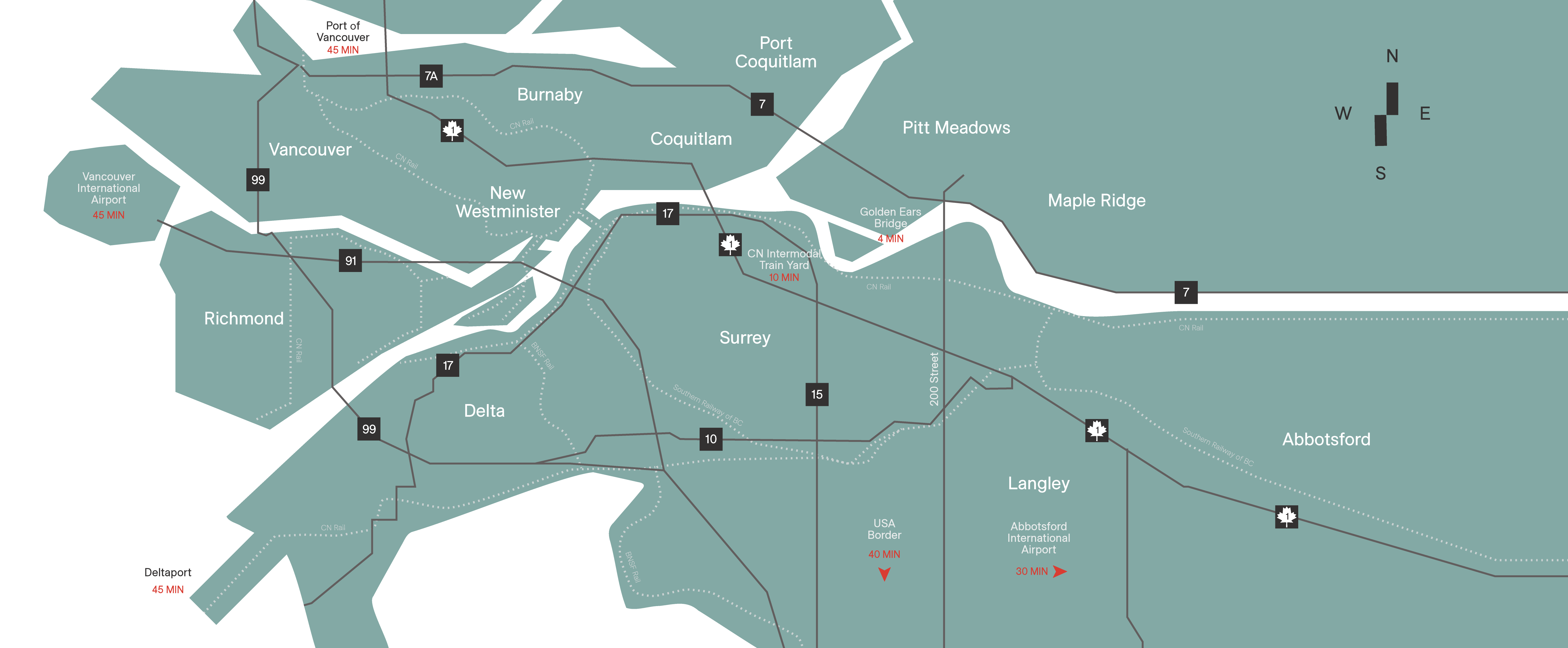 With direct connections to Deltaport, the CN Intermodal Train Yard, and two international airports, The Grid offers unparalleled reach to national and global markets.